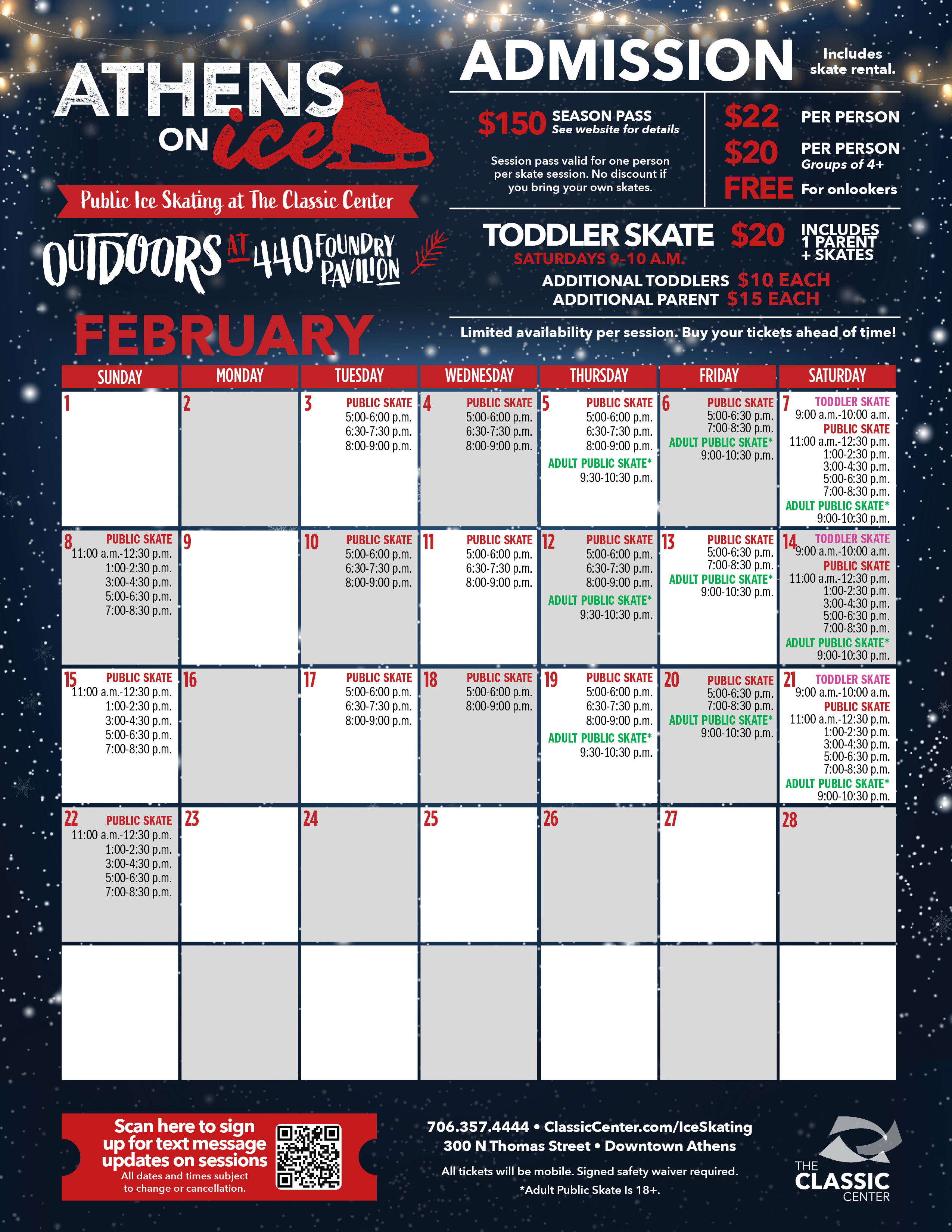 Text "SKATE" to 833.725.1576 for the most up-to-date Athens On Ice schedule alerts and important information!