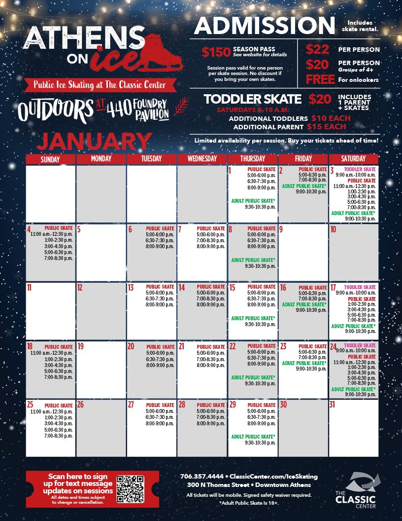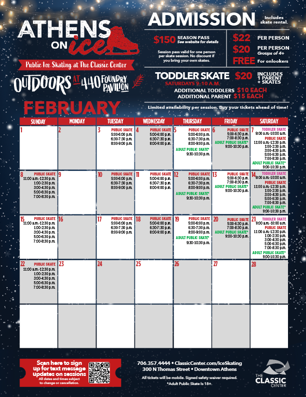 Located at 440 Foundry Pavilion at The Classic Center, this season of ice skating is gearing up to be the most unforgettable, with exciting theme nights and surprises in store!