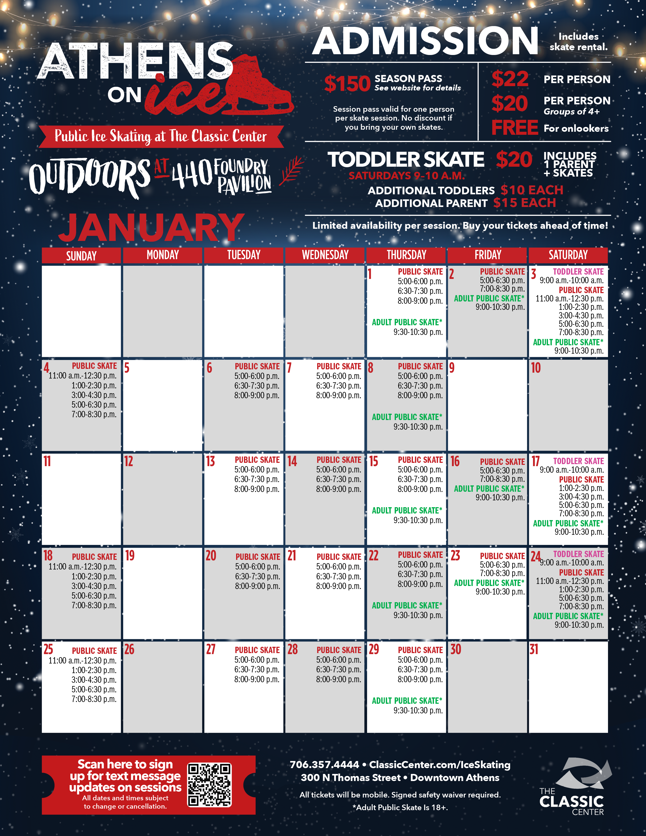 Love to skate and want to enjoy the entire season of Athens On Ice? Grab your Season Pass today and enjoy unlimited skating from December to February. Here's to endless memories and fun times on the ice!