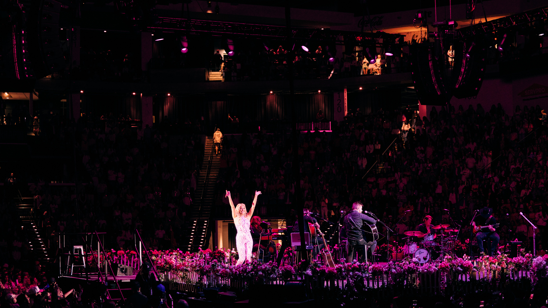 - Pink lighting illuminated Akins Ford Arena, creating a vibrant backdrop for the celebration.